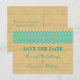 Modern and trendy Rustic Chevron Save the Date Postcard featuring a digital art printed woodgrain texture background and a zig zag pattern of teal chevron stripes. This design is perfect for announcing a rustic yet elegant wedding. Easy to customise, simply add your wedding details. Click on "Customise It" to find more personalisation options.