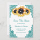 Custom teal rustic sunflower wedding save the date cards featuring sunflowers, string lights and teal floral lace. Matching items available to complement these teal rustic chic wedding save the date cards.