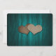 Rustic teal wedding save the date card featuring a mason jar with string lights and adorned with two burlap hearts on a barn wood background. Easily personalise this romantic rustic teal wedding save the date online. Matching items available to complement this teal wedding save the date.