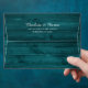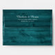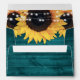 Personalised teal rustic wood and sunflowers wedding envelopes with a return address. Our teal envelopes feature sunflower flowers and string lights on a barn wood background. Matching items available.