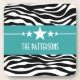 Trendy and modern Sassy Star Zebra Coaster Set featuring a chic black and white zebra print background and a bold turquoise border adorned with a fun star motif. This girly design may be customised with the personalised text of your choosing. Click "Customise It" to find more personalisation options.