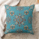 Teal Scandinavian Folk pattern snowflakes Cushion