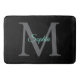 Teal Script Name, Large Grey Monogram on Black Bath Mat