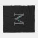 Teal Script Name, Large Grey Monogram on Black Fleece Blanket
