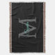 Teal Script Name, Large Grey Monogram on Black Throw Blanket
