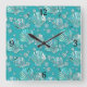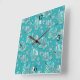 Teal, seafoam sea shells, turquoise background square wall clock