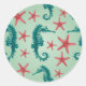 Teal Seahorse Pattern 2 Classic Round Sticker