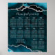 Guide your guests in style with this elegant wedding seating chart featuring a teal blue agate marble design accented with luxurious silver details. The bold geode-inspired background creates a dramatic and sophisticated look, perfect for fall and winter weddings, formal celebrations, or glamorous evening events. Designed for up to twelve tables, the layout keeps names organized and easy to read while complementing the organic agate texture. Ideal for couples seeking a stylish and unique wedding display, this seating chart blends natural stone aesthetics with a refined, modern layout. Easily personalize all text to match your wedding details and create a beautiful focal point for your reception.