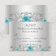 Teal Silver Floral Swirl RSVP Card