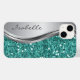 Teal Silver Sparkle Glam Bling Personalised Metal Case-Mate iPhone Case