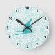 Teal Snow Skiing Round Clock