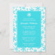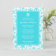 A winter themed bridal shower invitation featuring a teal blue and white snowflake design. Easily personalise for your event.