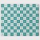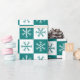 White and teal snowflakes alternate on chequered blue-green and white squares to create a stylish geometric pattern perfect for Christmas.