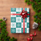 Teal Snowflake Chequered Pattern Christmas Holiday Wrapping Paper
