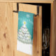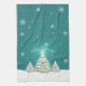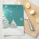 Teal Snowy Christmas Tree Kitchen Towel