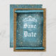 Teal Sparkle Gold Diamond Tiara Scroll Save Date Announcement Postcard