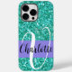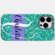 Fun party vibe, teal sparkling glitter Case-Mate iPhone 14 Pro Max Case - text font is customisable and design is transferable-