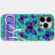 Fun party vibe, purple butterflies and teal sparkling glitter -Case-Mate iPhone 14 Pro Max Case - text is customisable and design is transferable-