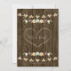 A fall themed baby shower invite in teal mint blue aqua, green, brown, white, yellow and brown hues with a beautiful wood look background reminiscent of a wooden fence and barrel. An autumnal laurel wreath composed of acorns, berries, sunflowers, tulip rose and white blossoms sit on a leafy branch. The back of the invite can be customised with gender wording inside of the carved heart look design. Perfect for an outdoor fall, night time, country, farmhouse, barnyard or rural chic themed baby boy shower. The charming twinkle and fairy lights with a bokeh effect look bright, warm and inviting. Artwork © Chrissy H. Studios, LLC. All rights reserved.