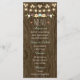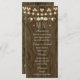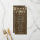 This wedding menu card is part of a fall floral rustic string of lights wedding invitation set in teal mint blue aqua, coral, green, brown, white, yellow and brown hues with a beautiful wood look background reminiscent of a wooden fence and or barrel. An autumnal laurel wreath composed of acorns, berries, sunflowers, tulip rose and white blossoms sit on a leafy branch. The back of the card can be personalised with the initials of the bride and groom inside the carved tree look heart design. The word menu is flanked by two sweet hearts. Perfect for an outdoor fall, night time, country, farmhouse, barnyard or rural chic themed wedding, anniversary party, engagement dinner or bridal and couples shower. The charming twinkle and fairy lights with a bokeh effect look bright, sweet, warm and inviting. Artwork © Chrissy H. Studios, LLC. All rights reserved.