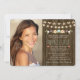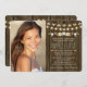 Add your favourite pic to these floral rustic string of lights sweet sixteen invitations with a photo in teal blue aqua, coral, green, brown, white, yellow and brown hues with a beautiful wood look background reminiscent of a wooden fence and or barrel. An autumnal laurel wreath composed of acorns, berries, sunflowers, tulip rose and white blossoms sit on a leafy branch. The back of the invite can be customised with the name of the event and personalised with the birthday girl's name. Perfect for an outdoor fall, night time, country, farmhouse, barnyard or rural chic themed sweet 16. The charming twinkle and fairy lights with a bokeh effect look bright, warm and inviting. Artwork © Chrissy H. Studios, LLC. All rights reserved.