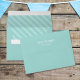 This design features a blue teal stripe striped simple, a minimalist minimal basic plain,5x7 a7 simple envelope, a turquoise coordinating matching blue, a fun whimsical adorable whimsy, a stylish trendy calligraphy script, a modern simple typography text, matching birthday party invitations, a colourful bright teal turquoise, a simple basic teal envelopes