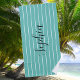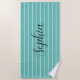 Teal Stripes on White & Black Script Name 2 Beach Towel