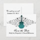 Perfect for announcing a rock and roll themed wedding is this rocker chic Swirls Guitar Save the Date Postcard in teal. This unique design features a damask guitar flanked by cascades of elegant swirl flourishes. Easy to customise, simply add your wedding details in the spaces provided. Click on the "Customise It" button to find additional personalisation options.
