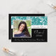 Graduation Invitations with photo and Classy blue-green aqua teal, Black and White Design with flowers and flowing swirly vines. Cute, chic, delicate and feminine style for any girl or female graduate. Show your personal style with this beautiful photo grad invite. Great as a graduation announcement or graduation party invitation.