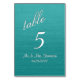 Stunning teal blue with white number for your classiest affairs. Add the newly married couples name and the date to make this a unique memento that lasts.