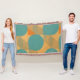 Teal, Tan, and Orange in Retro Look Pattern Throw Blanket