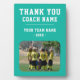 Teal Thank you Coach Team Name Photo plaque. Personalise with your coach name, team name, team photo and year. You can change any text on the plaque. A great gift and a keepsake plaque for a soccer coach! Get the team to sign the non-designed areas with a fine point permanent marker.