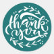 Teal Thank You Modern Calligraphy Wreath Classic Round Sticker