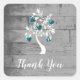 Seal your thank you cards with this elegant Teal Tree of Hearts wedding thank you sticker. Sticker design features a grey wooden background adorned with a tree with blooming hearts on its branches. Additional wedding stationery, wedding supplies, and party favours available with this design as well.