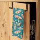 This attractive hand towel features a pattern of boho style feather images in colours of teal blue, gold, dark grey, dusty pink and cream. The pattern is printed on a medium dark teal background. Perfect for a southwestern or western style decor. Be sure to see the matching products in our store.