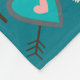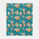 Cute fox images wearing boho style tribal attire are the feature on this fun and colourful fleece blanket. Along with the fox images are images of a tribal feather, leaf, and little brown squirrel. There is also a teal and pink heart arrow. The images are placed on a darker teal background.
