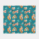 Teal Tribal Fox Pattern Fleece Blanket