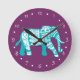 Teal Tribal Walking Elephant Round Clock
