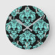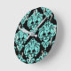 Teal Turquoise & Black Damask Modern Personalised Round Clock
