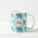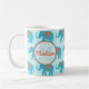 Teal turquoise, blue Elephants on blue stripe name Coffee Mug