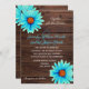 Teal turquoise blue floral, rustic wood wedding invitation