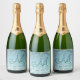 Wedding reception favours. Classy turquoise teal green floral monogram pattern custom sparkling wine bottle labels. Chic, elegant, modern, trendy, stylish, beautiful succulent metallic. To customise script, click on edit design. Image copyright Marg Seregelyi Photography.