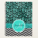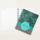 Teal Turquoise Faux Glitter Leopard Print Monogram Planner