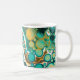 Teal, Turquoise, Gold, White Fluid Art Coffee Mug