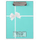 Teal Turquoise White Bow Classy Elegant Glam Clipboard