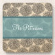 Elegant and modern Vintage Zinnia Coaster Set featuring a pretty textured floral background and an alluring turquoise two-toned banner. Easy to customise, simply add the personalised text of your choosing in the text field provided. Click "Customise It" to find additional personalisation options.