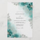 This design evokes a dreamy, ethereal mood with its flowing teal watercolor washes and delicate silver botanical accents. The prominent teal hues create a sophisticated and romantic atmosphere, perfect for a memorable occasion.