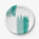 Enjoy a meal on these new teal watercolor designed disposable paper plates.