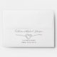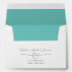 Elegant, minimal, modern teal wedding invitation 5x7 envelope with return address, simple calligraphy script and silver rope heart.