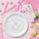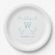 Modern and simple Whimsical Flourish Monogram Wedding Paper Plates featuring an elegant swirl motif in turquoise. Easy to customise, simply add your initial and wedding details in the text fields provided. Click "Customise It" to find more personalisation options.
